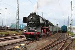 Undoubtedly, the stars of the collection are the four steam locos of class 50.35, for such a long time typical of Wittenberge depot. Apart from these, visitors can also admire the cute little industrial loco Emma and a class 44 heavy freight loco, as well as seven main-line diesels and seven smaller diesel locos The railway enthusiasts also look after a hospital carriage of the Deutsche Reichsbahn, the car-carrier which formed part of the first GDR ministerial train and a number of hand-trolleys. The signal box "Wm", built in 1909, is also part of the railway museum and anyone who wishes to try their hand on the levers can find out just how much physical effort lay behind resetting points and signals in the old days.