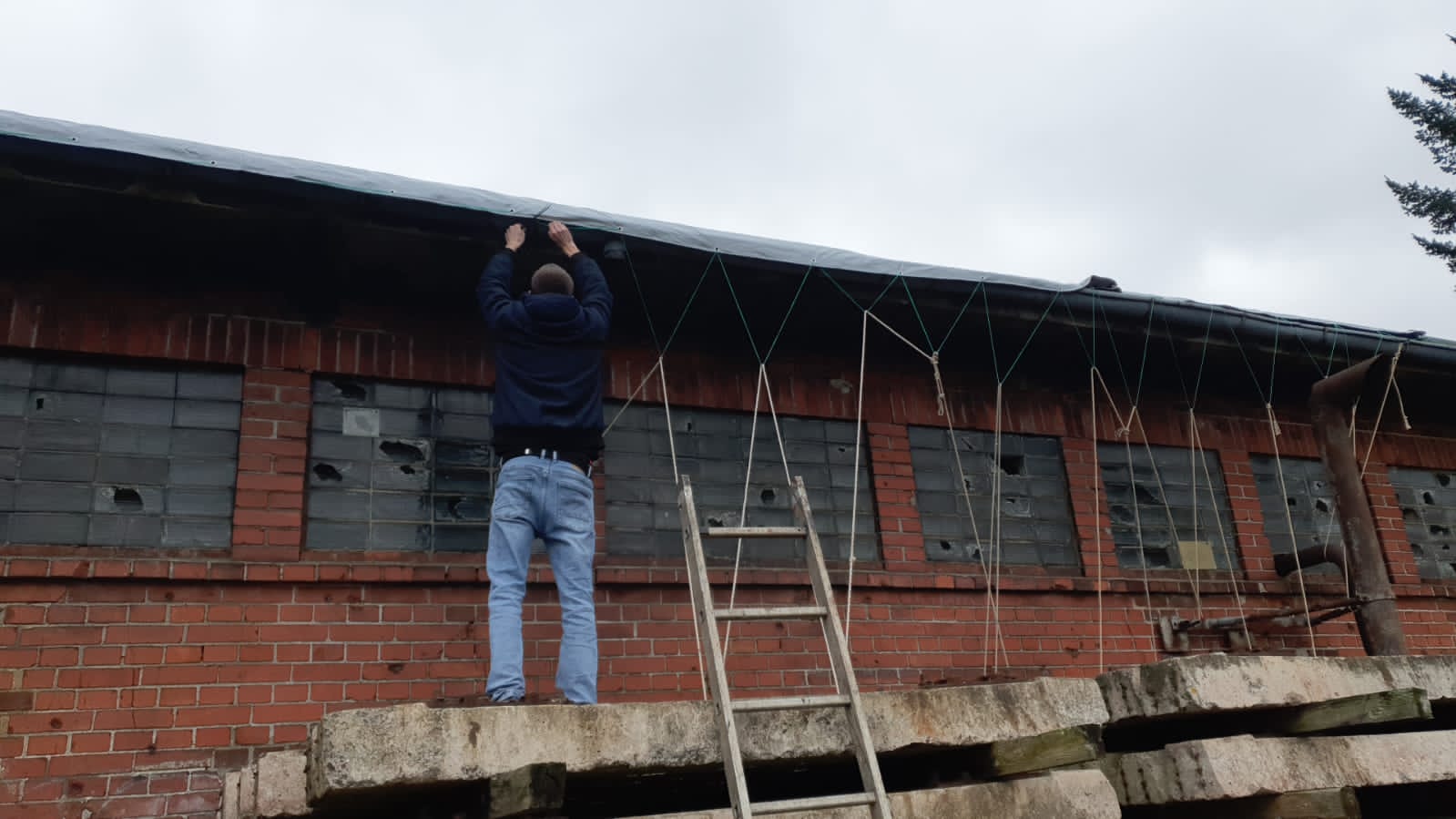 Unfortunately, we occasionally have to deal with unforeseen tasks, as was the case last weekend. During the recent rainy days, it became apparent that the roof of the former emergency power generator hall had started to leak. A tarpaulin was put up as a temporary measure until spring, when the weather will allow new roofing felt to be installed.