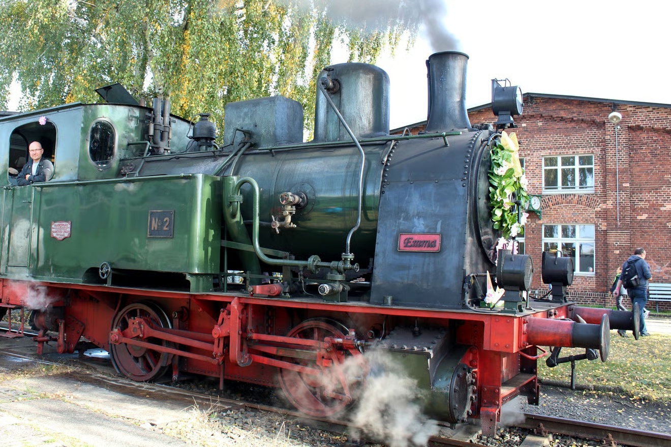 Zu den Höhepunkten der Herbstdampftage am Wochenende gehören Rundfahrten mit der Lokomotive „Emma“, die im kommenden Jahr 100 Jahre alt wird. Die zweiachsige Lok wurde 1925 von der Firma Hanomag in Hannover ausgeliefert und als Rangierbahn in der Rübenernte eingesetzt. 2008 wurde sie laut Verein von einem privaten Gleisbauunternehmer erworben und nach einer Restaurierung den Dampflokfreunden zur Verfügung gestellt.
