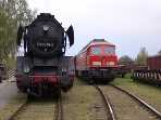 Undoubtedly, the stars of the collection are the four steam locos of class 50.35, for such a long time typical of Wittenberge depot. Apart from these, visitors can also admire the cute little industrial loco Emma and a class 44 heavy freight loco, as well as seven main-line diesels and seven smaller diesel locos The railway enthusiasts also look after a hospital carriage of the Deutsche Reichsbahn, the car-carrier which formed part of the first GDR ministerial train and a number of hand-trolleys. The signal box "Wm", built in 1909, is also part of the railway museum and anyone who wishes to try their hand on the levers can find out just how much physical effort lay behind resetting points and signals in the old days.