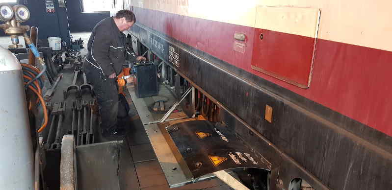 Bei unserer Diesellok 60022 wurden die Pressluftflaschen aufgeladen. Sie enthalten Druckluft zum Starten des mächtigen Dieselmotors, der erstmalig in diesem Jahr wieder lief.
