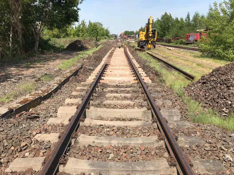 Bereits im Laufe der vergangenen Woche wurde wieder an unseren Gleisanlagen gearbeitet. Hier wurden noch etliche Holzschwellen gegen solche aus Beton getauscht. Außerdem wurde an der Straßenecke gegenüber unserem Stellwerk Wm eine Eisenbahnachse auf einem Stück Gleis aufgestellt, um auf unser Museum hinzuweisen.