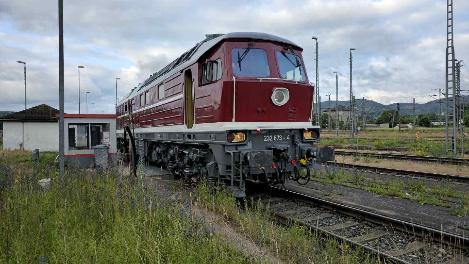 Wir freuen uns, heute die erste Gastlok vorstellen zu können, die an unserer Veranstaltung am kommenden Wochenende teilnehmen wird. Es handelt sich um die Diesellokomotive 232 673 der Bahnbetrieb Gera GmbH. Sie wurde 1981 in Luhansk, heute Ukraine, gebaut. Der Spitzname dieser Baureihe lautet daher "Ludmilla". Die Lok wurde von der ehemaligen Deutschen Reichsbahn in Betrieb genommen, ging dann später auf die DB AG über und wurde 2014 von dieser ausgemustert, weil der Bedarf an schweren Diesellok zurückging. Danach begann ihr zweites Leben bei einigen privaten Eisenbahngesellschaften, die sie vorwiegend im Güterzugverkehr einsetzten und das bis heute machen. Die aktuellen Eigentümer haben die Lok wieder in ihre originale Farbgebung spendiert, so dass sie perfekt an die Diesellok-Ära im Lokschuppen Wittenberge von vor dreißig Jahren erinnert. Wir bemühen uns um eine weitere Lok der Baureihe für die kommende Veranstaltung, um die Erinnerung perfekt werden zu lassen. Außerdem bemühen wir uns um eine Elektrolok der Baureihe 155. Allerdings ist deren Erscheinen noch nicht hundertprozentig abgesichert, weil ihr Einsatzplan für nächste Woche noch nicht völlig geklärt ist. Wir informieren, sobald sich konkreteres ergibt.